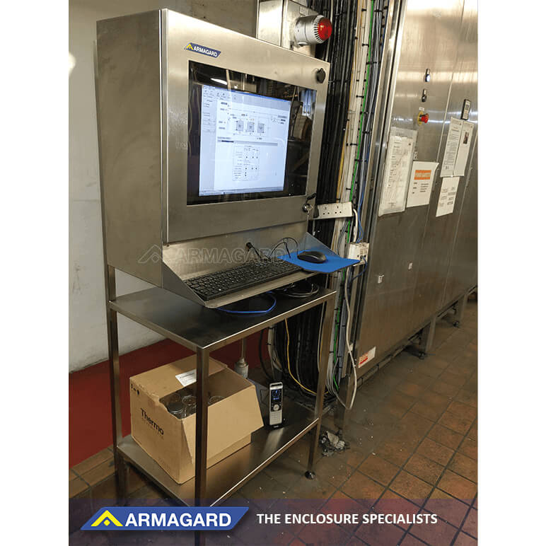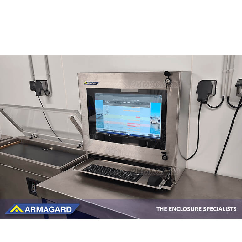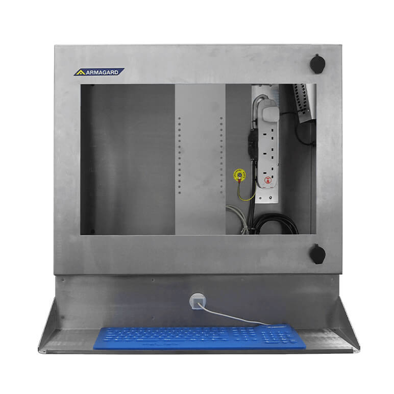 De RVS computerbehuizing is ontworpen voor 24-inch monitoren en stelt u in staat om te profiteren van de functionaliteit van een pc in natte, hygiënische omgevingen die moeten worden schoongemaakt. De behuizing is gemaakt van 316 food-grade roestvrij staal en is antibacterieel en corrosiebestendig. Straalwassen is mogelijk, waardoor het ideaal is voor hygiënische industrieën.