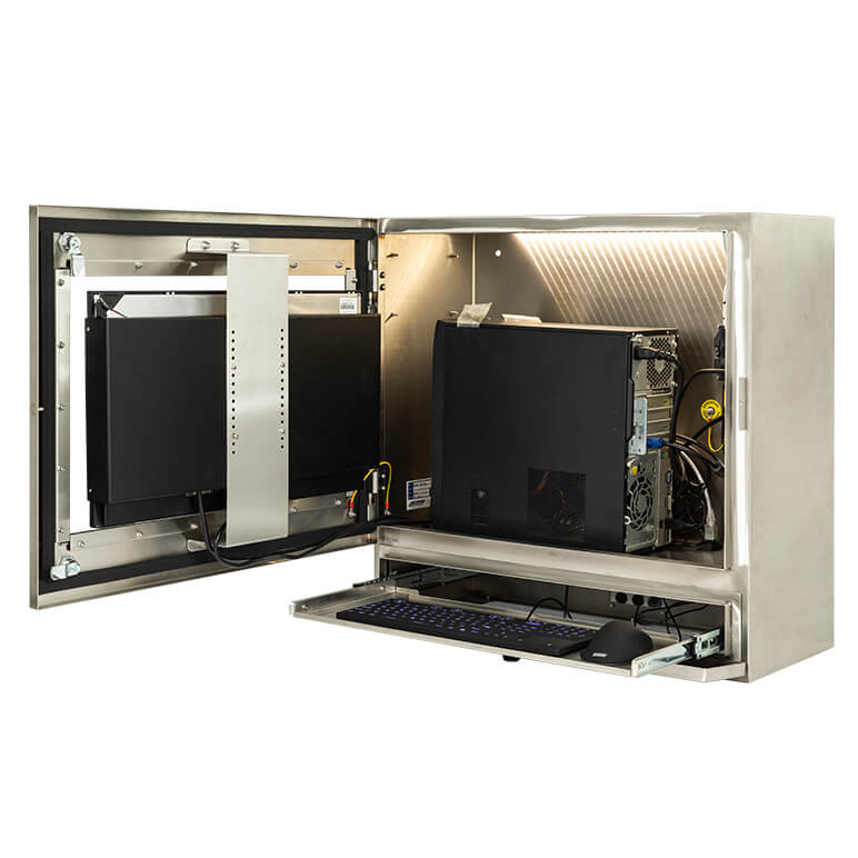 De waterdichte computerkast is geschikt voor pc's en VESA-compatibele 24-inch monitoren van de meeste fabrikanten. Hierdoor kunt u de meest geoptimaliseerde pc voor uw behoeften gebruiken. Het computerwerkstation kan gedurende vele jaren, meerdere generaties pc's beschermen en biedt een uitstekend investeringsrendement.