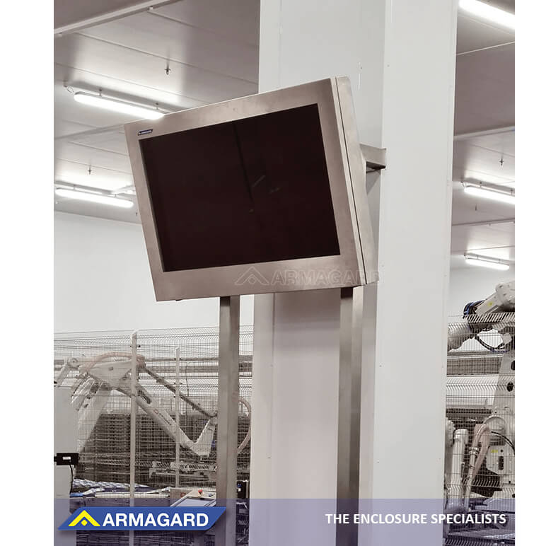 Enkele van de grootste voedingsmerken in het VK en Europa, waaronder ASDA, Del Monte en Florette, vertrouwen op Armagard-behuizingen om hun kritieke systemen op de werkvloer te beschermen. U profiteert van levenslange ondersteuning, toonaangevende garanties en 30 jaar ervaring van Armagard. De RVS industriële monitorbescherming is ook verkrijgbaar met een IP69K-classificatie en optionele touchscreen-functionaliteit.