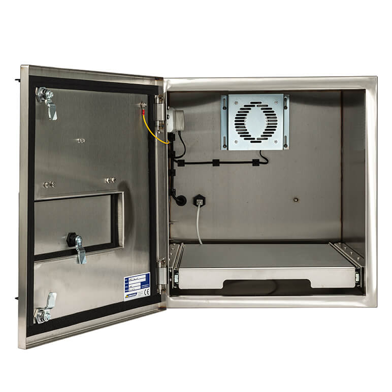 De SPRI 100 is een waterdichte roestvrijstalen (316 - food grade) printerbehuizing. Het heeft een gemakkelijke toegangsmethode voor het ophalen van papier en beschermt tegen stof, olie, vet, vuil, corrosie, bacteriën en fysieke impact. Kies tussen een desktop- of vloerstaande printerbehuizing.